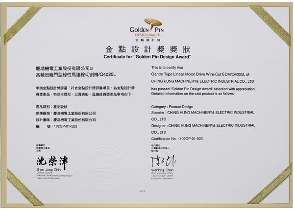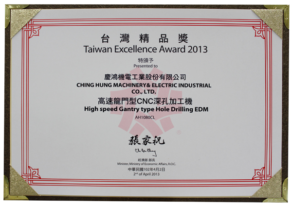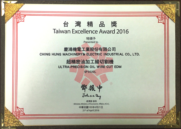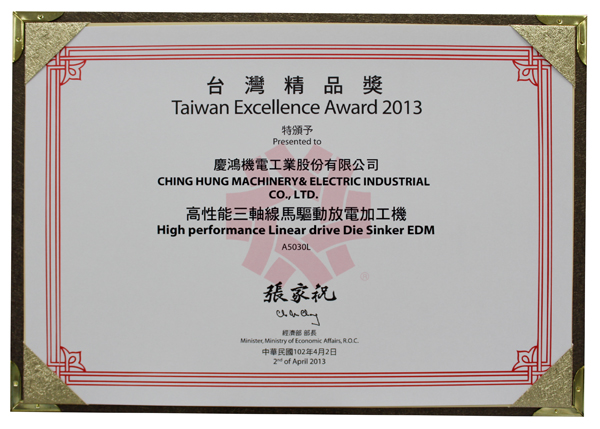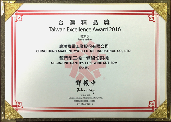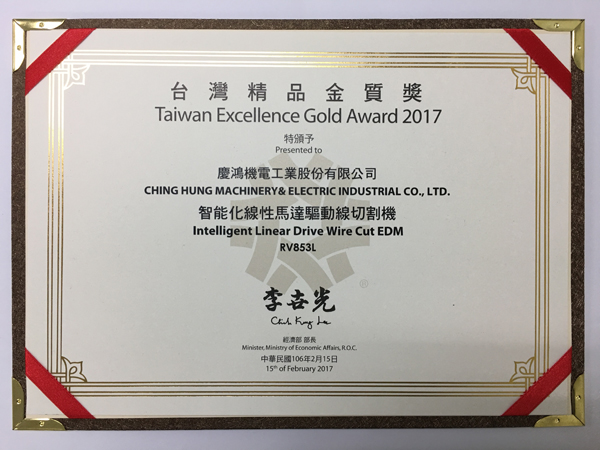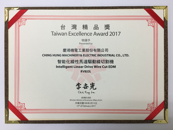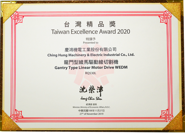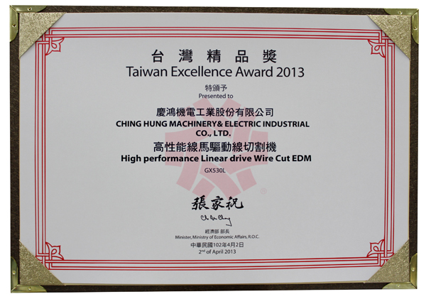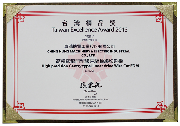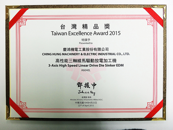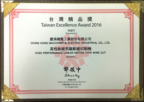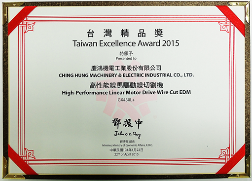 Q4025L, yüksek hassasiyetli lineer sürücülü tel kesme EDM, GX530L+, yeni GX+ Serisi lineer sürücülü tel kesme EDM, A5030L, 3 eksenli lineer sürücülü kalıp oyma EDM, AH1080CL, yüksek hızlı küçük delik delme makinesi,“Tayvan Mükemmellik Ödülü”nü kazandı.