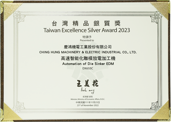 DX655C Yüksek Hızlı Akıllı EDM Makinesi, 31. “Tayvan Mükemmellik Gümüş Ödülü”nü kazandı.
