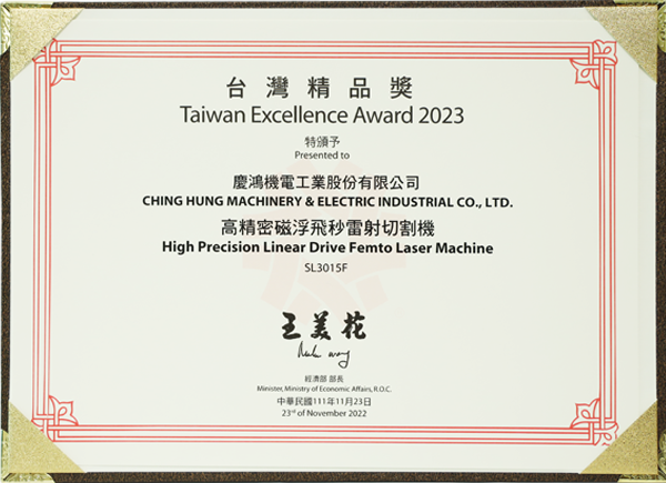 SL3015F Yüksek Hassasiyetli Maglev Femtosaniye Lazer Kesim Makinesi, “Tayvan Mükemmellik Ödülü”nü kazandı.