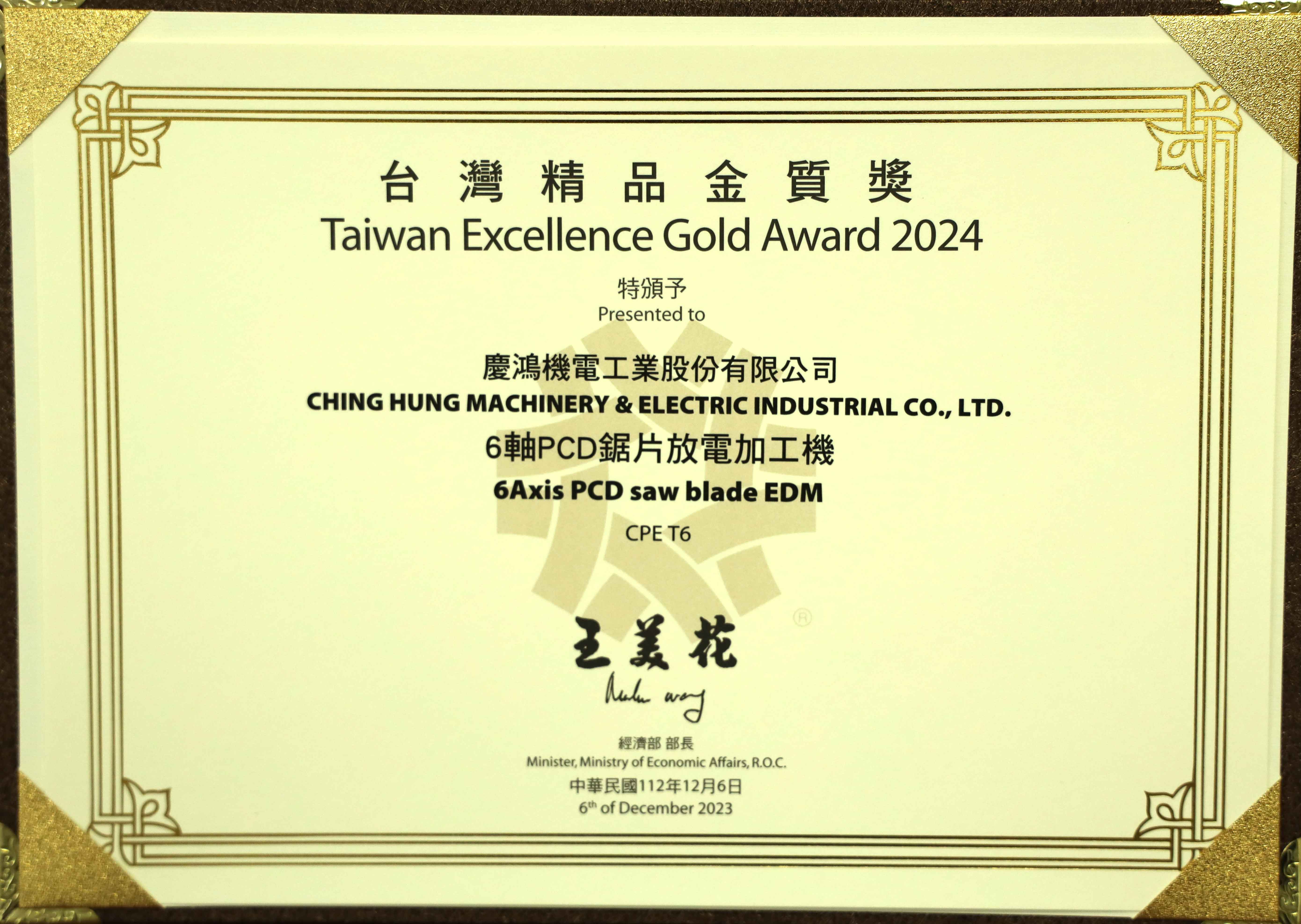 CPE T6 – 6 Eksenli PCD Testere Bıçağı Elektrik Deşarjlı İşleme Makinesi, 32. “Tayvan Üstünlük Altın Ödülü”ne layık görüldü;