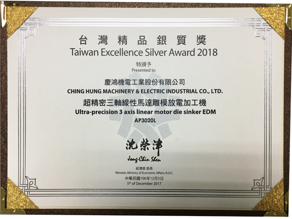 AP3020L, Ultra Hassasiyetli Üç Eksenli Lineer Motorlu Gravür EDM Makinesi, 26. “Tayvan Mükemmellik Gümüş Ödülü”nü kazandı;.