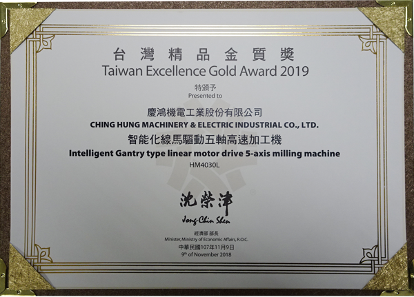 HM4030L, Akıllı Lineer Atlı Beş Eksenli Yüksek Hızlı İşleme Makinesi, 27. “Tayvan Mükemmellik Altın Ödülü”nü kazandı;.