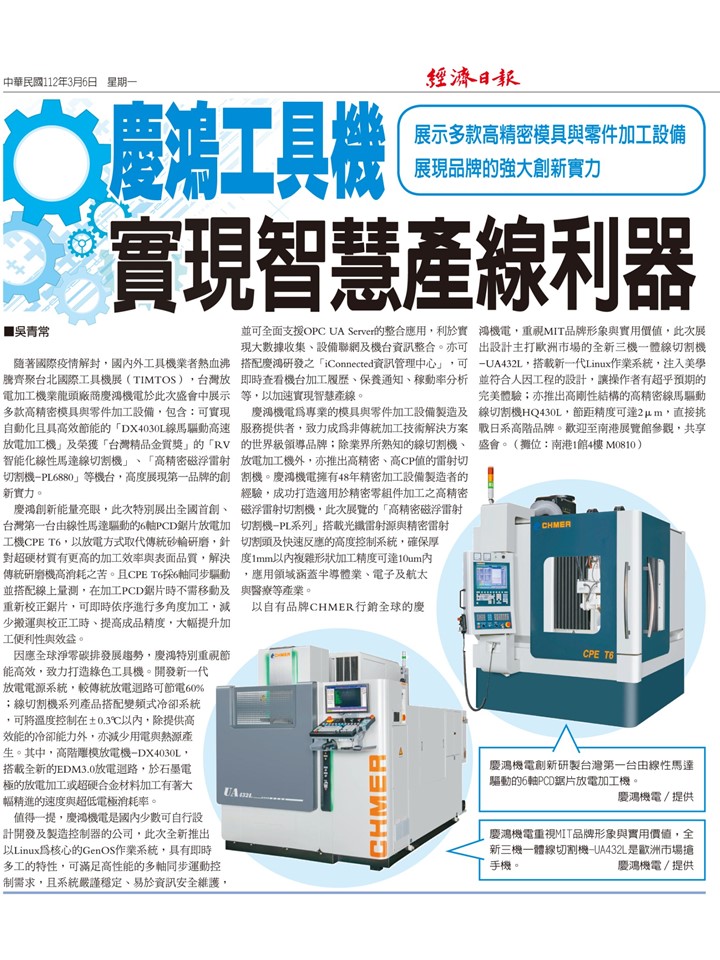 Home::News & MediaPress Releases20230301-Economic Daily-CHMER has strong innovation energy to create smart machinery and green machi